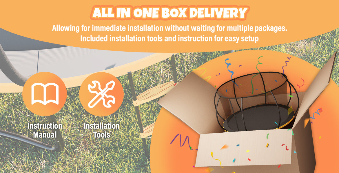 - Different sizes of trampolines: 8FT, 10FT, 12FT, 14FT, 16FT.
