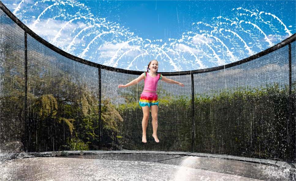 - Trampoline with different configurations, such as basketball hoop, water sprinkler, ground stakes, etc.